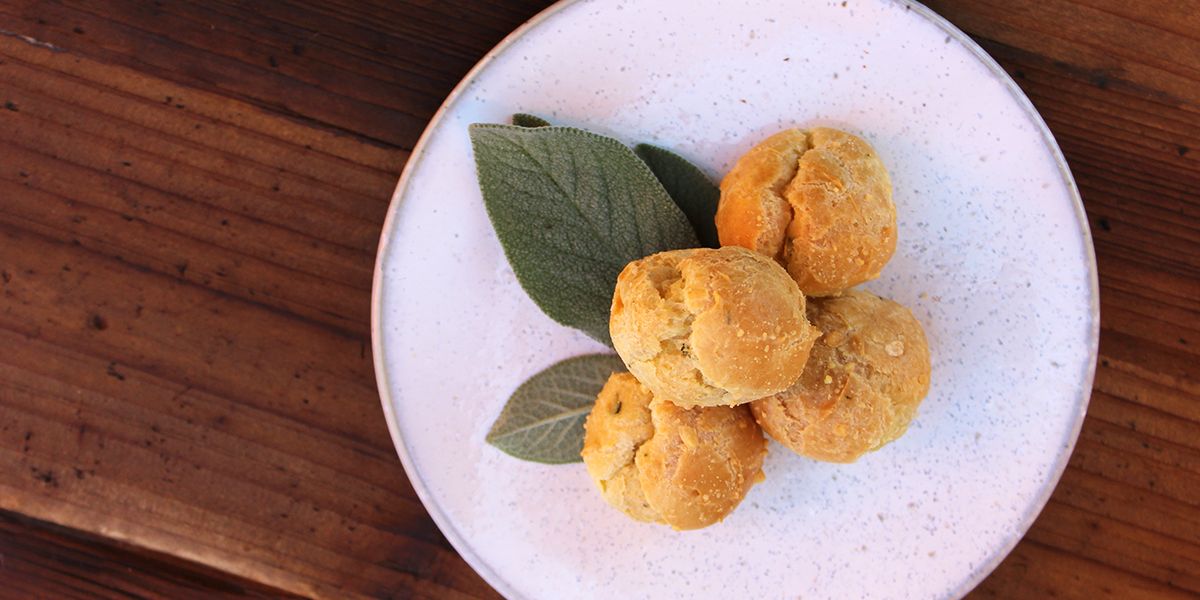 These simple and delicious baked Bacon and Blue Cheese Gougères are filled with creamy bleu cheese and smoky bacon, making them the perfect bite to pair with our layered Reserve Cabernet Sauvignon.