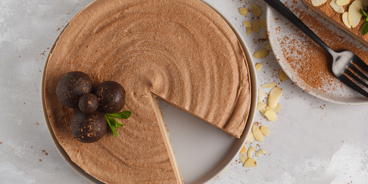 Remove from springform carefully and place on a cake stand. Dust with cocoa powder through a fine-mesh strainer and decorate as you like. Enjoy!