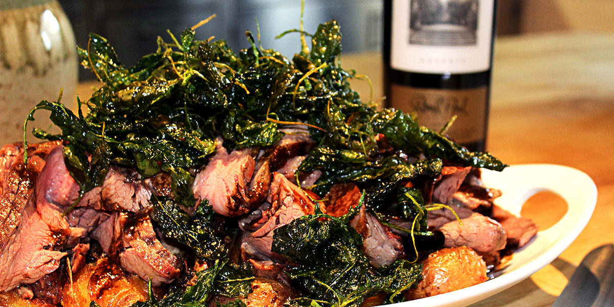 From our Il Pranzo menu, this delicious grilled flank steak with crispy potatoes, kale chips, and black garlic vinaigrette is everything dinner should be; simple, flavorful, and a real crowd-pleaser. Created to pair perfectly with our Proprietary Left Bank Blend.