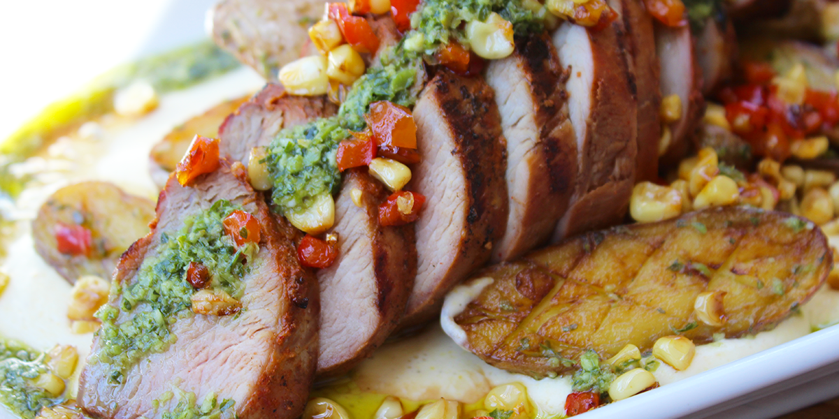 Pork Tenderloin with Crispy Potatoes & Herb Verde
