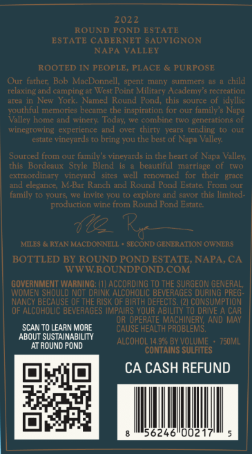 A true reflection of that signature Rutherford dust, this Cabernet Sauvignon embodies an old world meets new world style. The Estate Cabernet Sauvignon is handcrafted from our Rutherford Estate and Oakville vineyards. Exhibiting rich characteristics of dark complex fruits, minerality, and balanced intensity, the layers of this wine truly reflect the terroir of our vineyards.